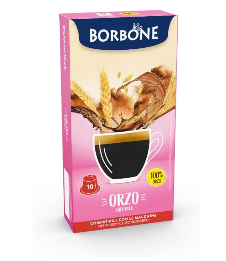 Capsule Borbone Orzo solubile, compatibili con macchine ad uso domestico Nespresso*; Le capsule compatibili Orzo solubile fanno parte della linea Vita, la più orientata al benessere delle 4 nuove linee di bevande aromatizzate in capsula “Nuove emozioni di gusto”, dedicata a chi non vuole rinunciare a iniziare la giornata con gusto